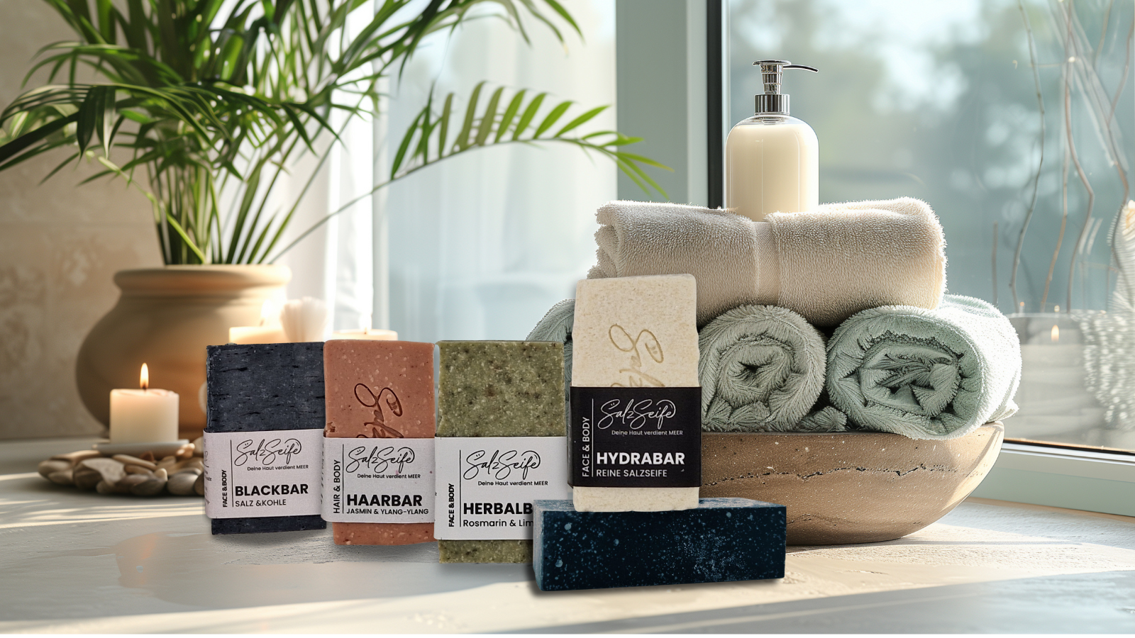 Unsere handgemachten Salzseifen eignen sich ideal für die tägliche Gesichtsreinigung, Körperpflege, Haarwäsche und intensive Handreinigung – natürlich palmölfrei, plastikfrei & vegan.
