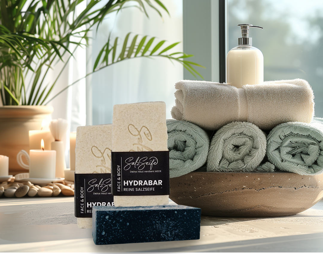 Unsere HydraBar Salzseife vereint Reinigung, Peeling & Pflege in einem Schritt – und bringt deine Haut sichtbar ins Gleichgewicht.